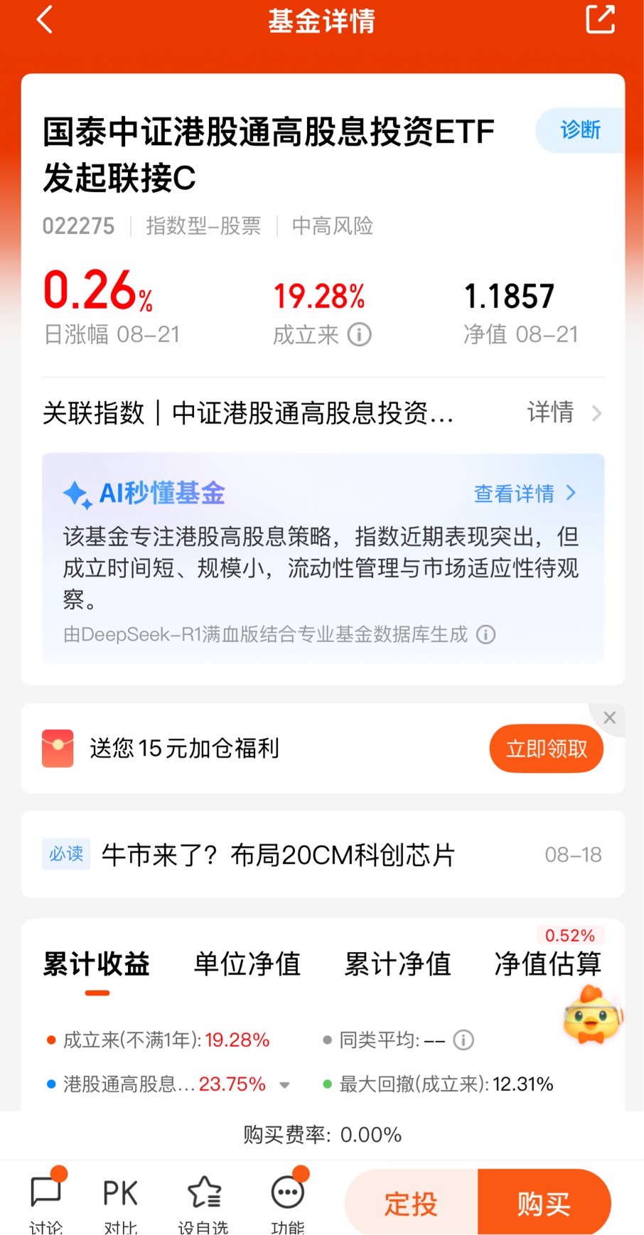 根据政策,基金分红暂不征收个人所得税,红利再投资部分也无需缴税,最大化收益。@国泰基金 $国泰中证港股通高股息投资ETF发起联接C$
