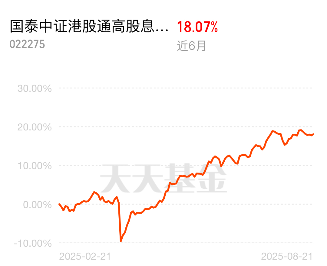 该基金跟踪中证港股通高股息指数,成分股多为金融、能源、公用事业等现金流充裕的行业龙头(如汇丰控股、中国海洋石油)。以2025年数据为例,其近12个月股息率达6%-8%,显著高于A股红利指数(约4%-5%)及港股宽基指数(恒生指数股息率约3.5%)。高股息率意味着每年可获得稳定的分红收入,适合长期持有收息。