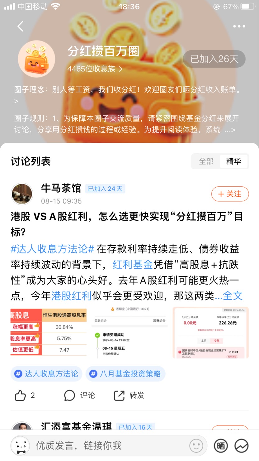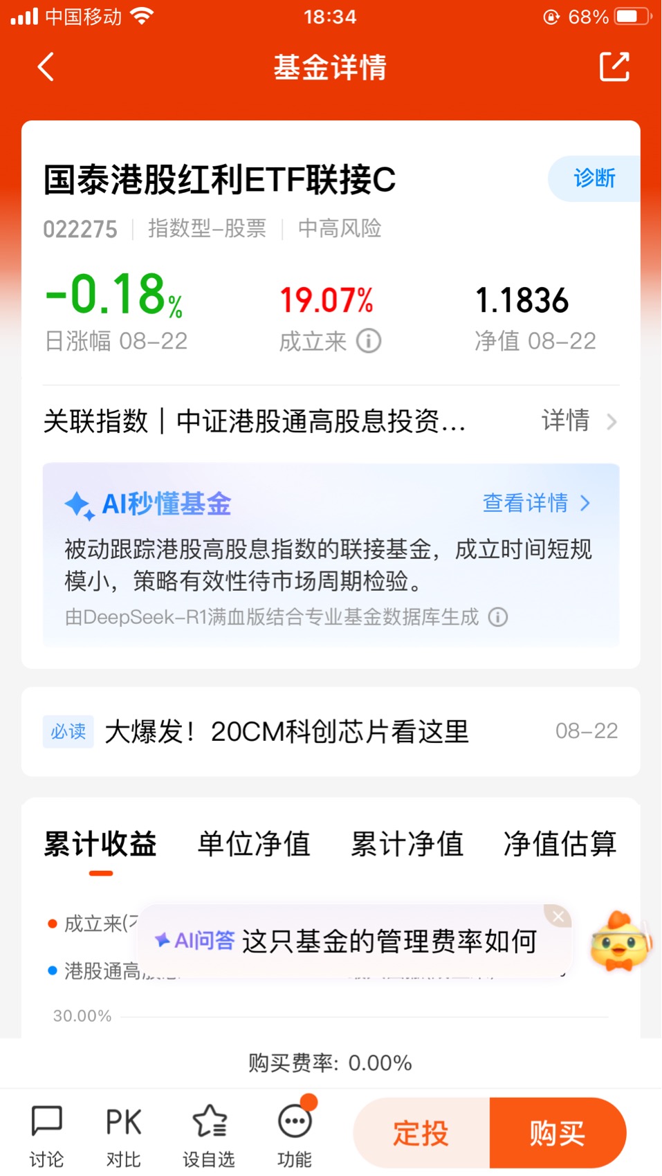#达人收息方法论#我倾向于将国泰中证港股通高股息投资ETF发起联接C基金作为分红搭子选择。选择该基金的深层原因:市场环境与产品特性高度契合低利率时代的收益替代需求