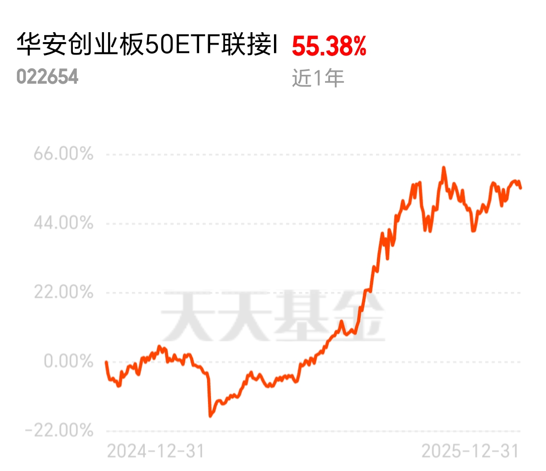 科技成长选$华安创业板50ETF联接I$ 准没错!近一年55.38%收益,创新药赛道也覆盖,I份额费率低超省心!