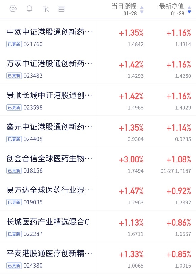 $鑫元中证港股通创新药指数发起式C$ 1.14%