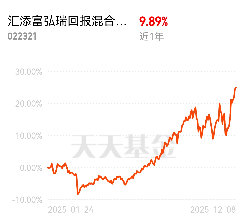 加仓1000“$汇添富弘瑞回报混合发起式C$ (022321 )”。我今天投一次工业有色金属混合基。这只基金主攻铜板块,基金重仓铜含量占比在70%,可以说是一只纯度很高的铜基(目前这类铜矿基市场非常稀缺,这是我看重的一点)。从收益表现看,该基金自成立以来收益持续创新高,今年更是涨超24个点,表现非常出色。目前,海外机构普遍预测,由于铜矿库存短缺,以及需求加大,2026年铜价还会上涨的概率较大。此外,美联储12月降息概率很大,加之美联储后期有望扩表,这会提振大宗商品价格,利好铜价上涨。所以我今天投一次含铜高的有色金属,看好后市表现!