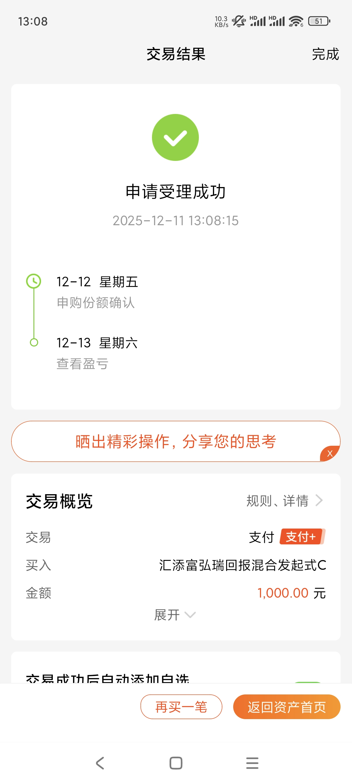 牛犇也提前布局下,买入一份汇汇添富弘瑞回报C(022321)。$汇添富弘瑞回报混合发起式C(OTCFUND|022321)$