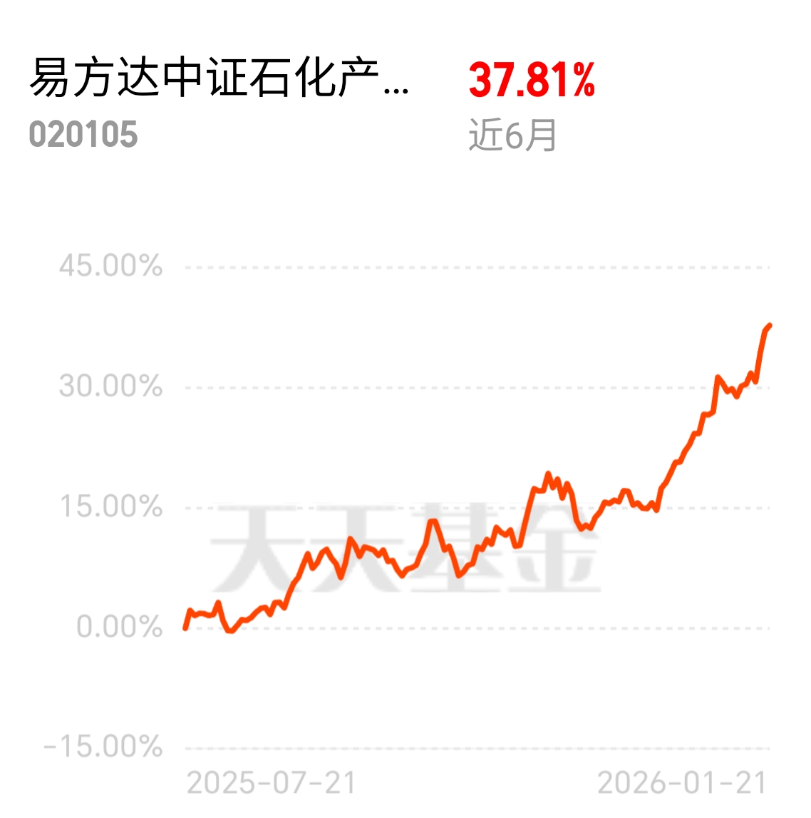 石化行业从量增向质升转型,发展质量提升,石油天然气领涨超有质量,易方达中证石化产业 ETF 联接发起式 C 近 6 月 37.81%,三桶油 + 细分化工机会都想抓住,买石化产业看质量$易方达中证石化产业ETF联接发起式C$