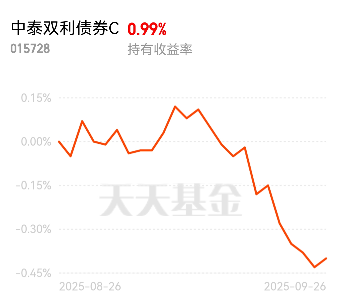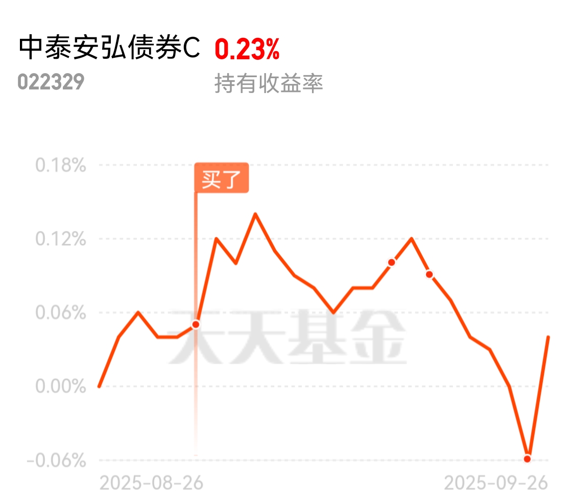 低波固收+中泰双利债券C也产蛋了3个,持仓的银行股涨得不错。