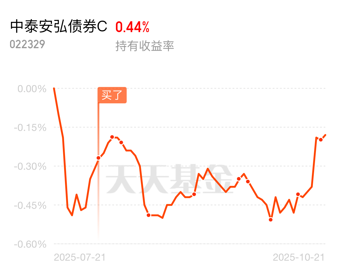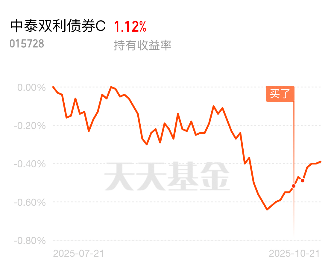 中泰两兄弟小产蛋!低波固收+中泰双利债券C应该是受到银行股的影响,所以表现较弱。