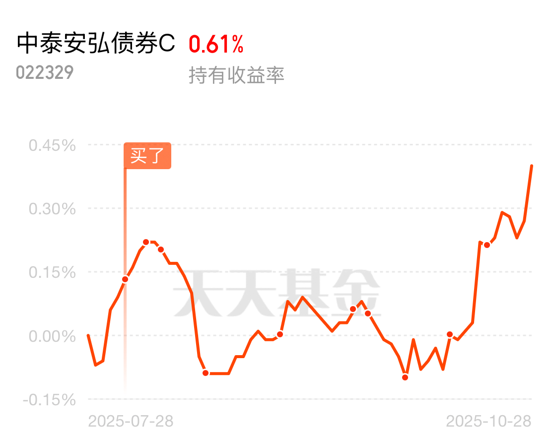 纯债基金今晚还是很猛的!稳健纯债中泰安弘债券C也爆蛋了13个,今年来涨幅2.75