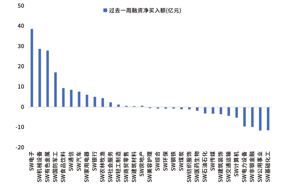 12月4日,两融资金占比为9.86%,11月27日为11.32%,反映出杠杆资金加仓意愿略有下降。截至12月5日,上周融资净买入的前三行业为电子、机械设备、有色金属。