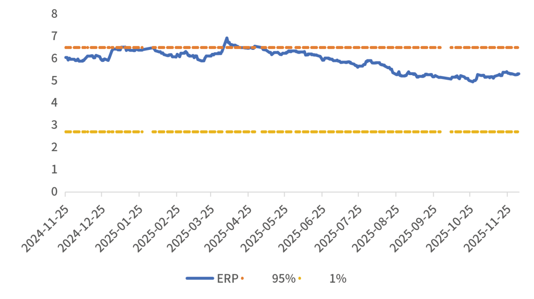 从股债性价比大周期的角度,目前权益相对固收的风险溢价为5.29%,处于历史51.47%的分位数,所以从此时点看,长期持有或仍是好选择。