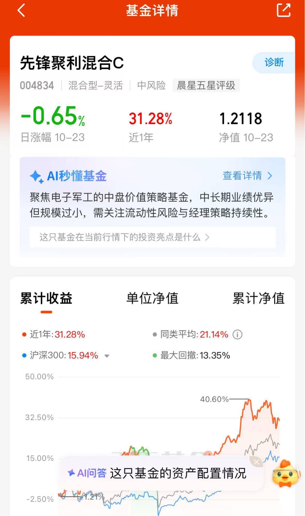 大国博弈下的科技机遇先锋聚利混合C全接住,今天估值1.39%大涨,近一年31.28%超额收益,近三个月7.91%持续领先验证自主可控主线含金量