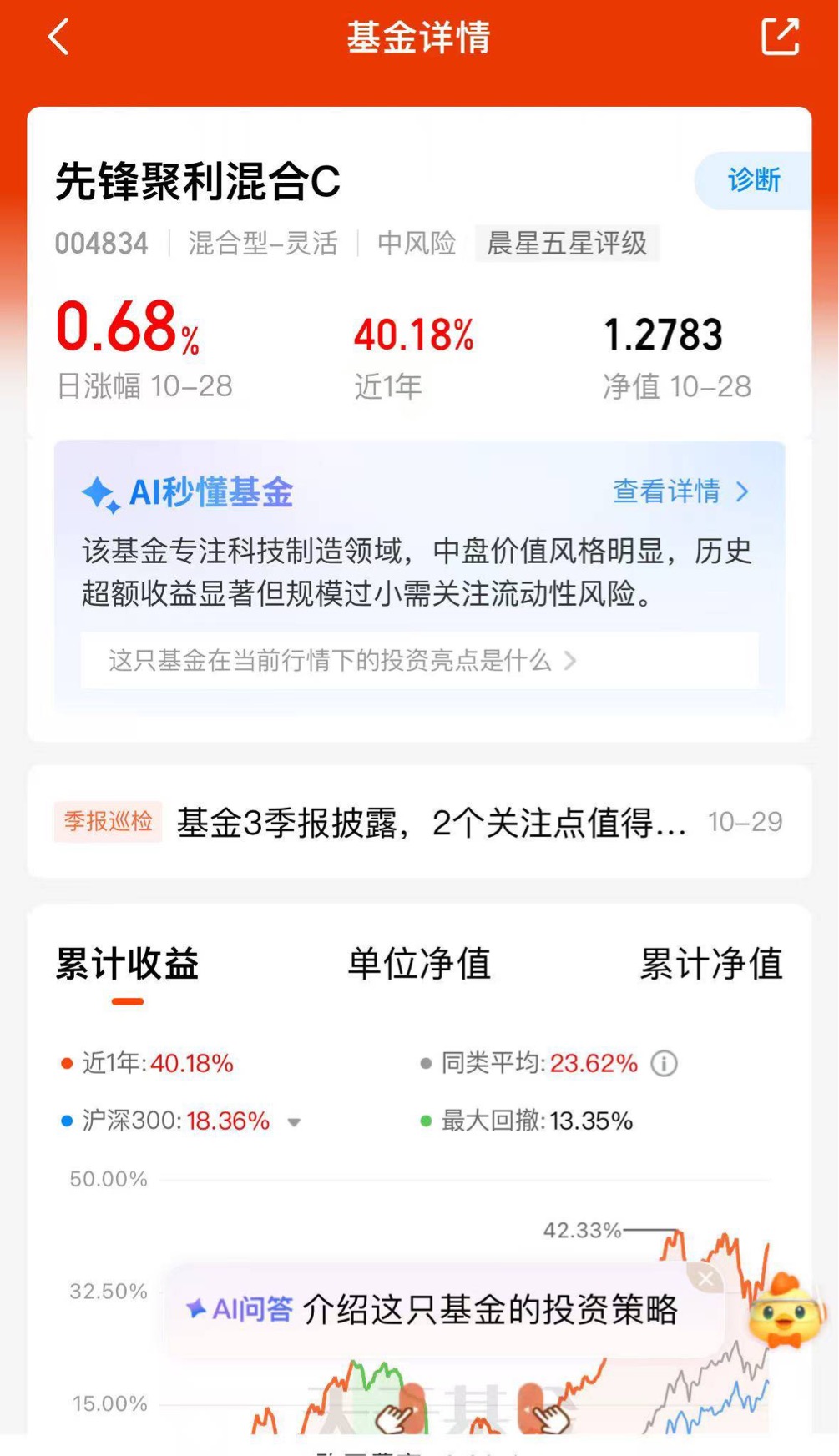 先锋聚利混合A今天回调又怎样,近1年40.45%持续发力