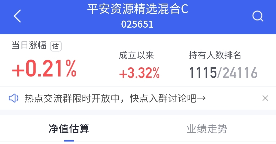 家人们,今年主线认准科技准没错!午后市场又强势拉升,$平安资源精选混合C$ 估值又涨0.21%,昨晚涨2.49%,爆发力绝了,这业绩谁看了不心动!