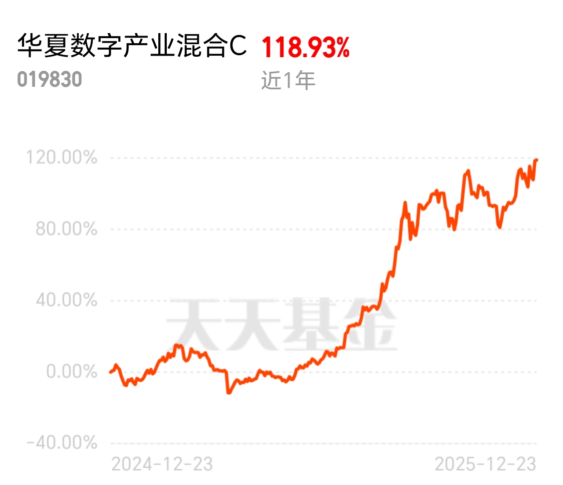 连续两天突破新高了,这基收益太值得重仓了,在天天近一年收益涨超118%,在18000多只产品中同类排名前1%,$华夏数字产业混合C$布局以行业集中+个股集中的策略增收能力好,今天回调就是给机会了