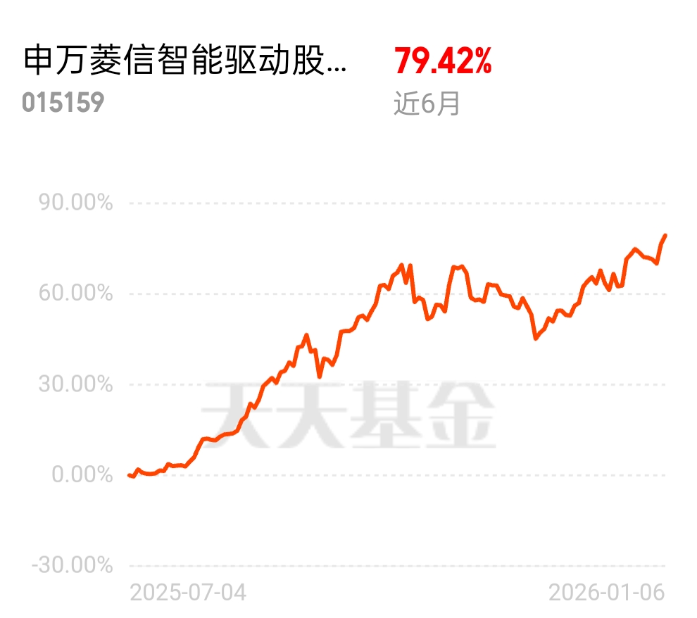 半导体行业景气度上行,资金流入创新高!申万菱信智能驱动股票表现超赞,$申万菱信智能驱动股票C$ 重点布局该方向,今年业绩持续上涨,今天估值超 3 个点,近 6 月 79.42%,重仓近期热点,成长力拉满!