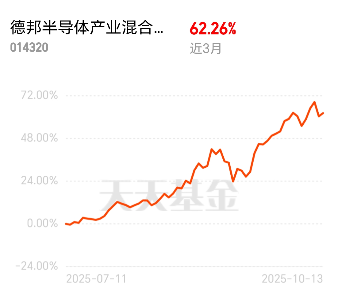 半导体设备企业订单大增,行业在爆发,回调只是暂时的。德邦半导体产业混合C近3个月62.26%,现在加仓,跟着喝汤。