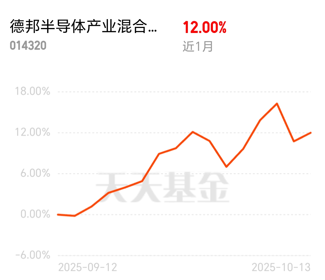 半导体板块跌完企稳了,它弹性大,涨起来很迅猛。德邦半导体产业混合C近1个月12.