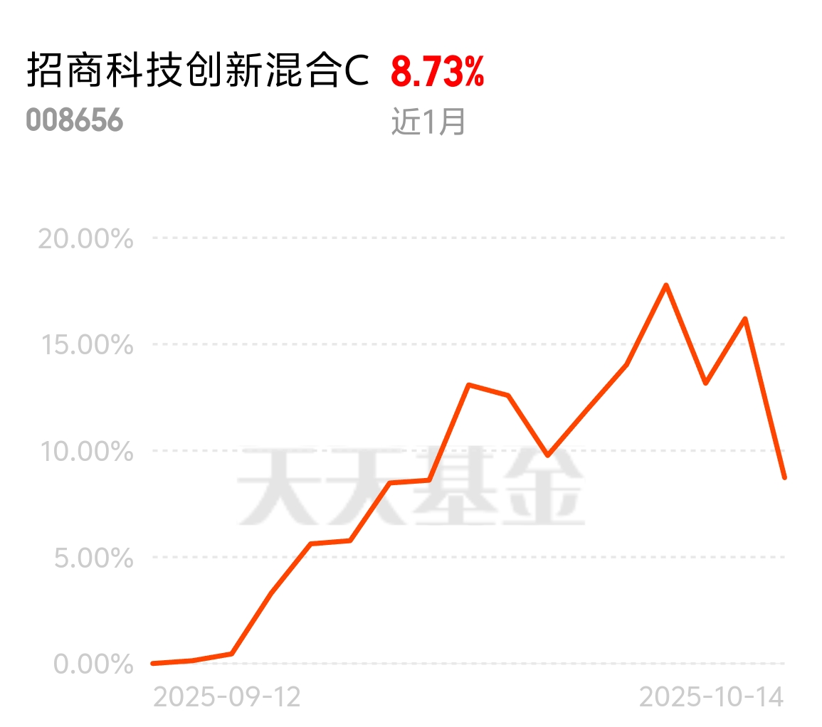 看市场行情,科技龙头基金波动后在回暖,AI算力需求还在涨。招商科技创新混合C近1个月8.73%的涨幅不错,手里有底仓的可以加仓,再赚一波。