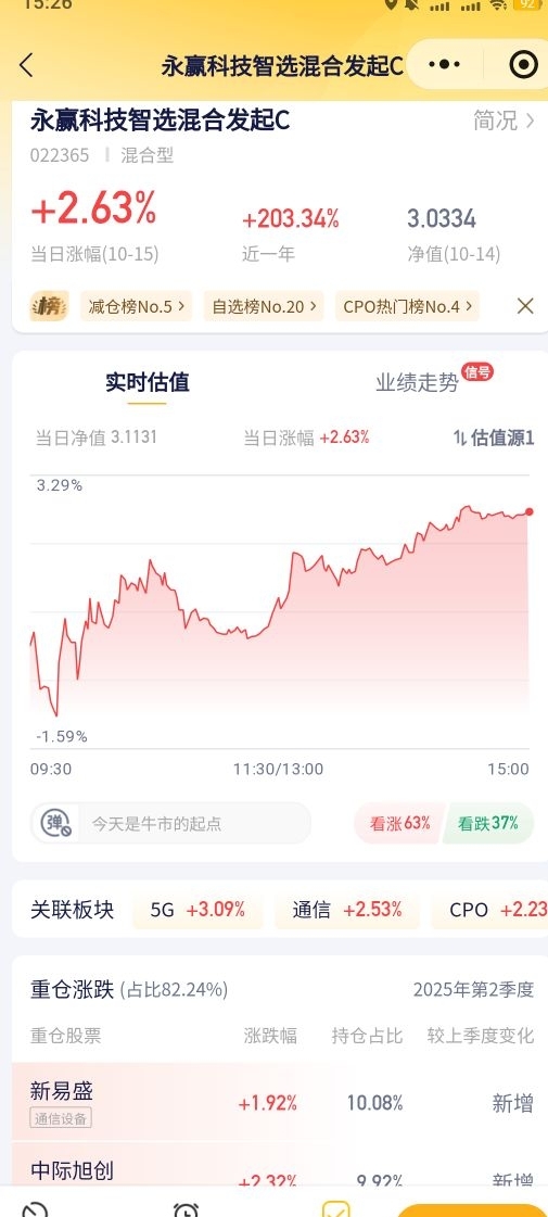 大盘今天红彤彤的,沪指涨1.22%,创业板指涨超2%,主要是政策利好和AI算力需求带动。CPO板块也走强,两融余额创新高情绪不错。个人感觉可以先拿着,观察明天能否放量冲前高。