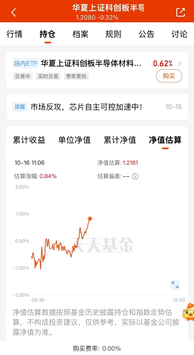 半导体依旧是王者,这里自成立一个月以来收益达到了20.80%,$华夏上证科创板半导体材料设备主题ETF发起式联接C$展现出十足韧性,今天也是调整后开始发力上扬了,加仓助力期待下