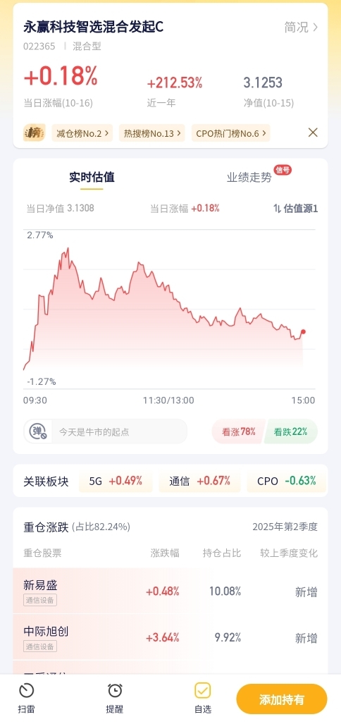永赢科技智选混合发起C今日预估涨幅+0.18%!