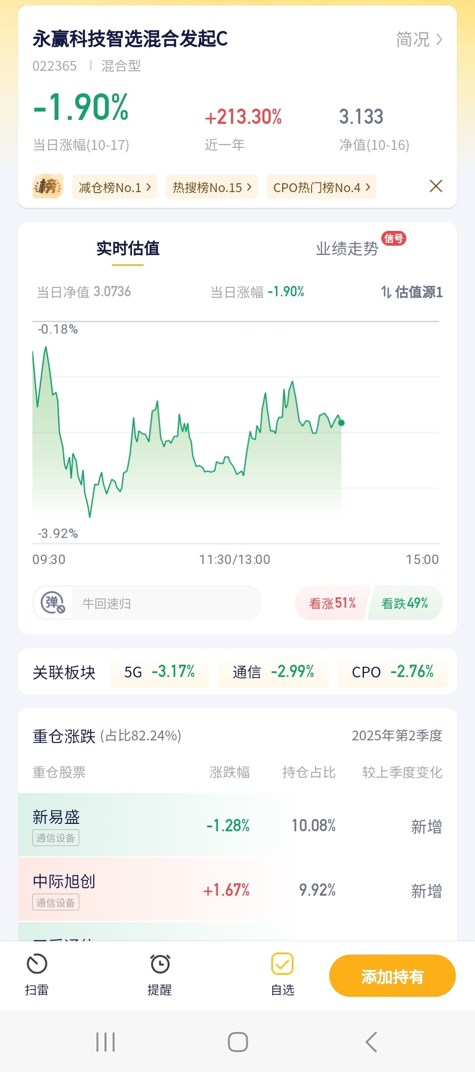 永赢科技智选混合发起C今日预估跌幅1.9%%!