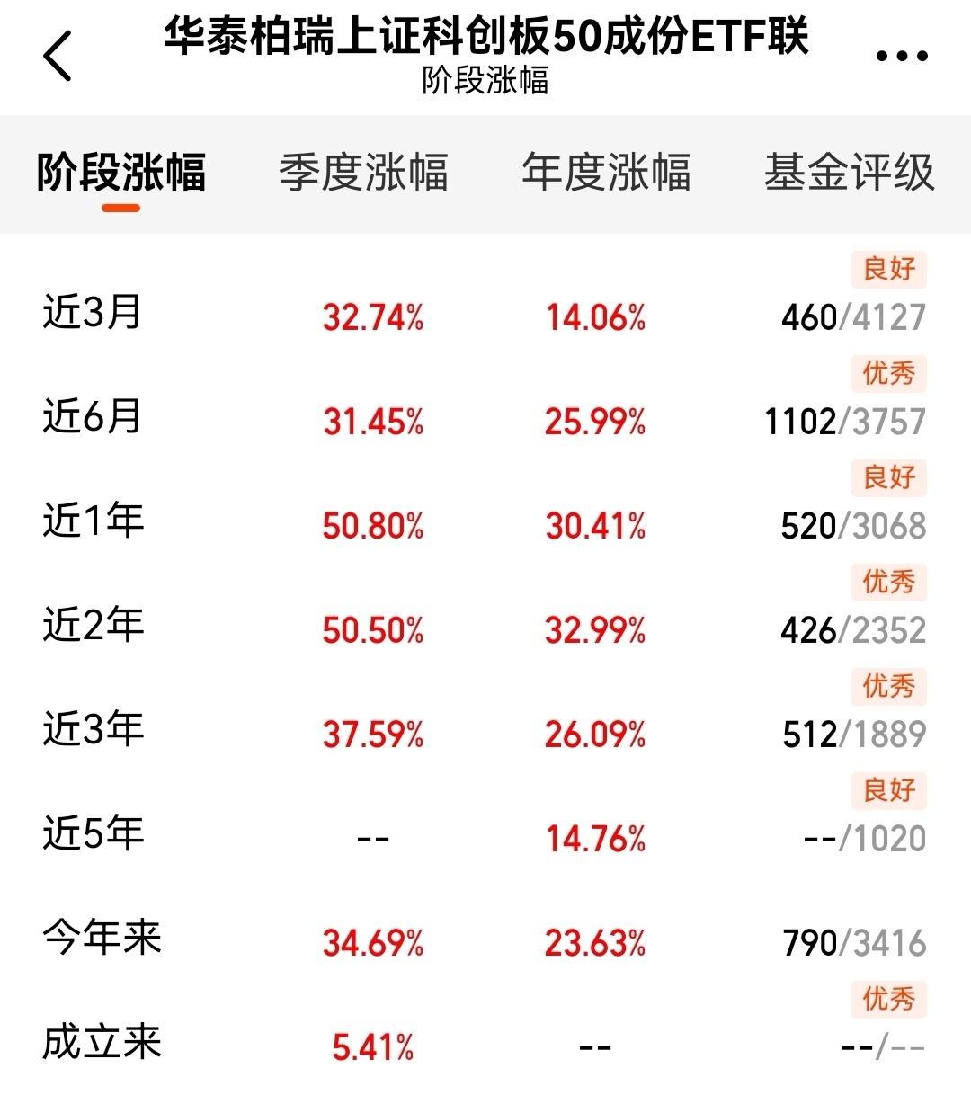 刚收到推送,$华泰柏瑞上证科创板50成份ETF联接C$ 今天估值涨了1.78%。看看近一年50.8%的收益,坚持看好一个板块总有回报。