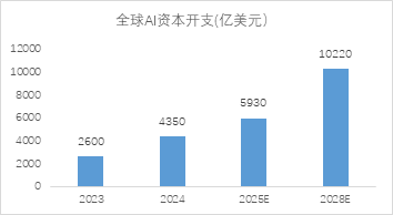 据预测,2028年全球AI资本开支有望达万亿美元!云计算将成商业落地主流方向,算力需求爆发催生AI芯片需求持续放量,CPO有望不断受益。