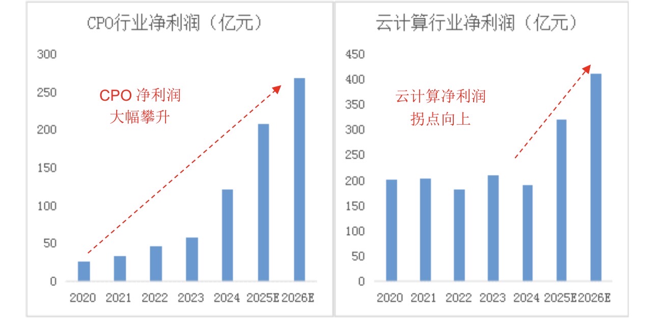 同时,CPO是云计算产业重要细分方向,近年净利润步入增长快车道,有望带动云计算利润拐点向上,成为核心增长引擎。