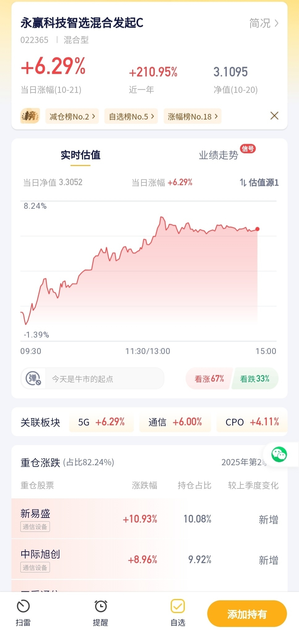 永赢科技智选混合发起C今日预估涨幅6.29%!