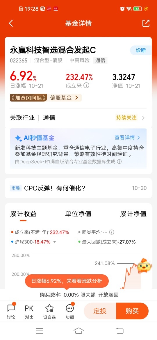 $永赢科技智选混合发起C$ 主打云计算!今晚更新涨幅6.92%,成立不到一年涨幅达232.47%