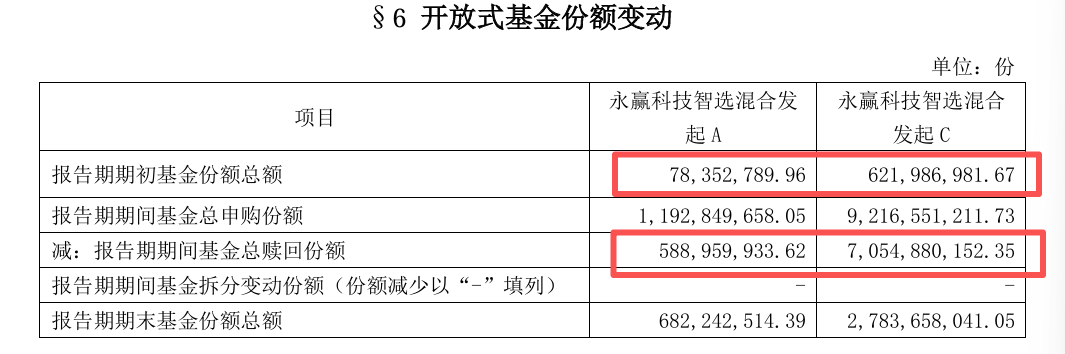 C份额也是,期初6.2亿份,结果三季度赎回了70.5亿份,10倍有余。