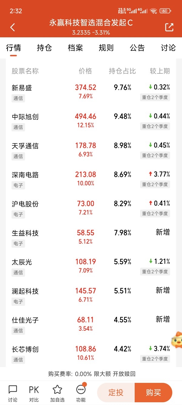 最近不少基金的三季度持仓出来了,做为CPO大哥的永赢科技智选混合发起C的前10大
