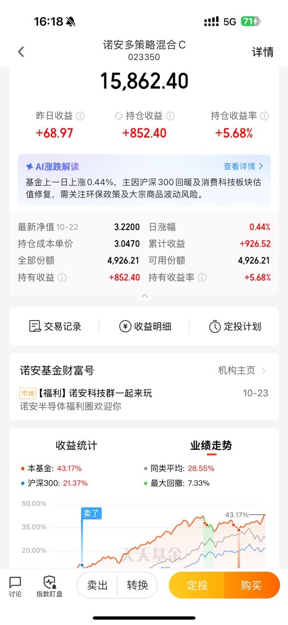 谁懂啊!上半年脑子一热满仓CPO,结果近期板块天天净流出,亏得我心态崩了。后来听说微盘股是今年黑马,果断转投$诺安多策略混合C(023350)$ ,没想到才两个月就回本还小赚!看持仓里全是专精特新小巨人,跟着量化策略走,比自己瞎折腾靠谱多了,截图为证,真心推荐给被套的朋友!#沪指再创十年新高!接下来你会如何操作?#