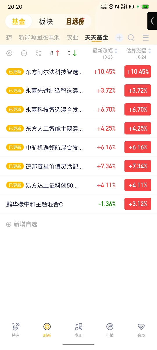 大盘冲高,芯片霸屏涨幅榜!寒武纪涨超9%成新股王,存储芯片、光模块概念掀涨停潮。AI需求引爆行业,外资喊出“超级周期”。震荡这么久,今天芯片终于爆发,其中最牛的就是东方阿尔法这支,当日涨幅猛,净值第一!给力!$东方阿尔法科技智选混合发起C$ $永赢科技智选混合发起C$ $东方人工智能主题混合C$