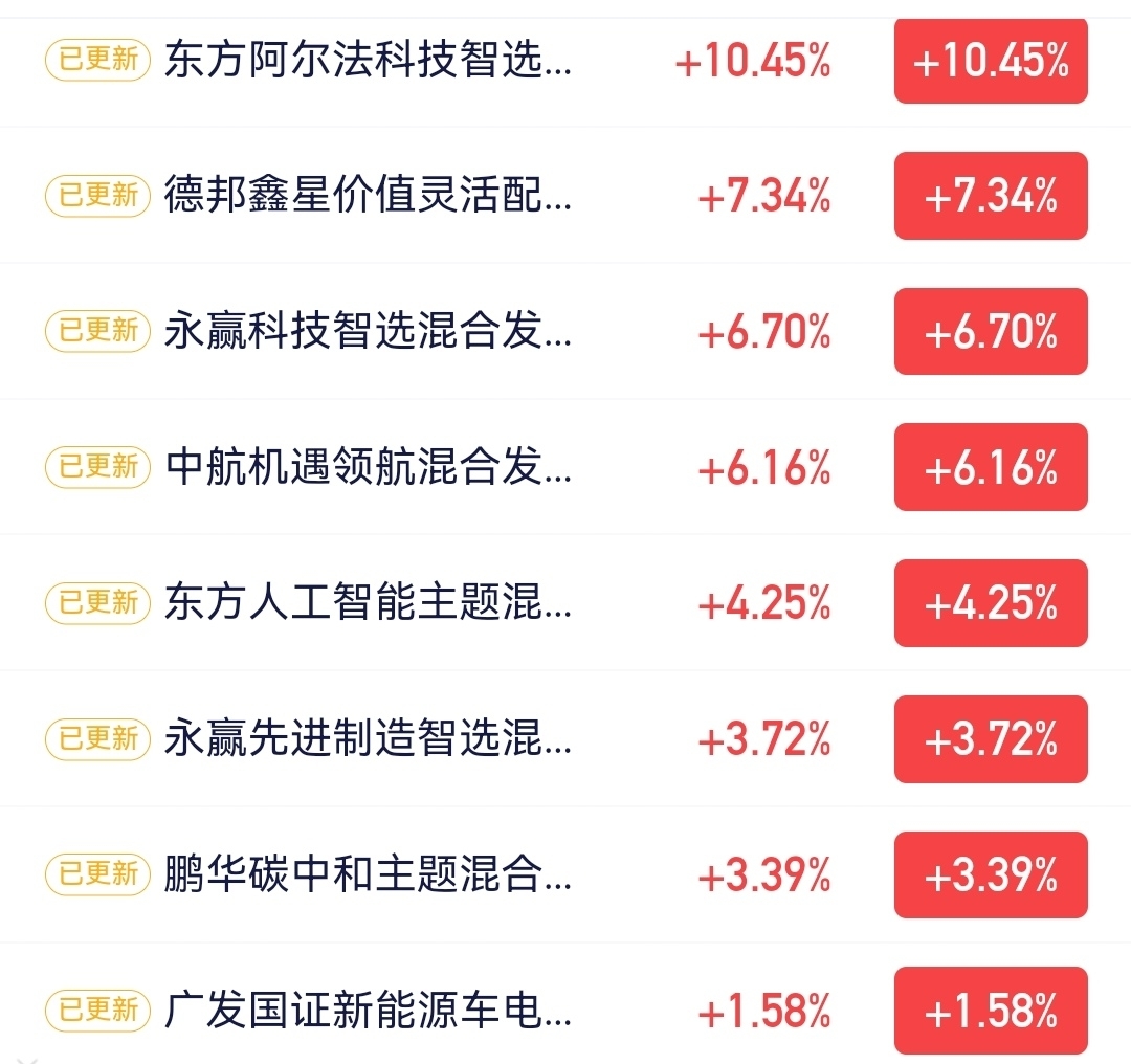 今日A股缓过劲,指数微弹,芯片挑大梁领涨。资金扎堆进场,个股跟涨。东方阿尔法最牛,当日涨幅靠前,净值窜顶,总算扬眉!$鹏华碳中和主题混合C$ $永赢先进制造智选混合发起C$ $永赢科技智选混合发起C$