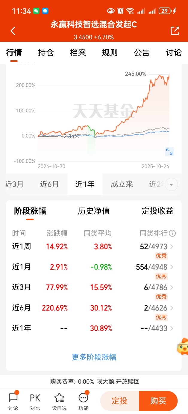 $永赢科技智选混合发起C$ 凭借着对CPO概念持续布局,上周五大涨+6.70%,位列全市场涨幅前列!其它各阶段业绩更是惊人,近一周涨幅+14.92%,近三个月涨幅+77.99%,近六个月涨幅+220.69%,在四千多只产品里排名第二,可见弹性之强,展现出精准捕捉技术红利的优势。#沪指再创十年新高!接下来你会如何操作?#