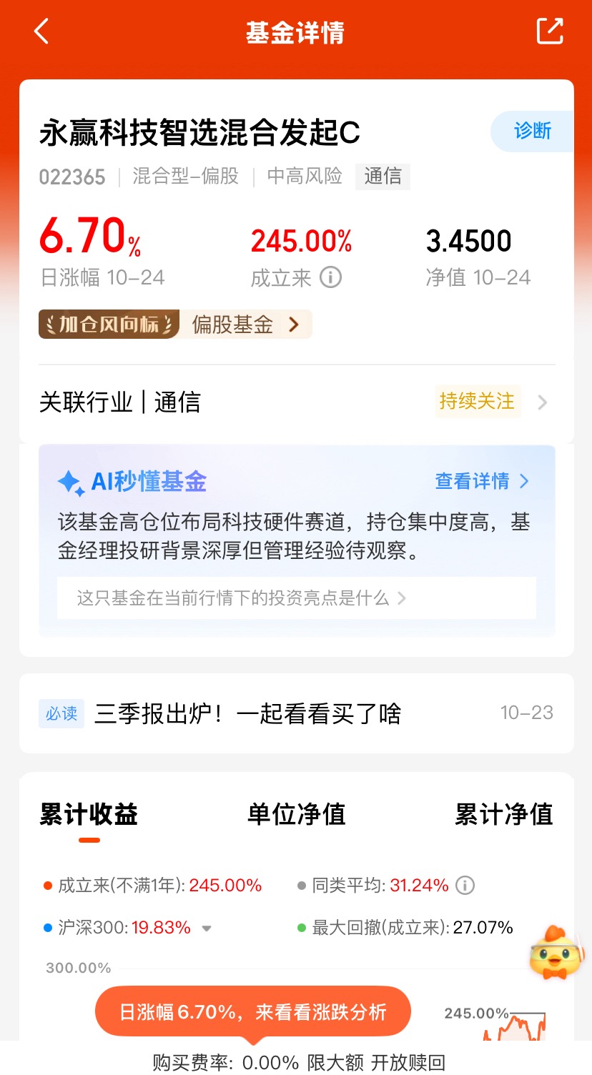#党的四中全会审议通过“十五五”规划建议# 2025年10月,CPO板块在资本市场表现活跃,相关企业股价波动较大,部分龙头企业因业绩增长和订单落地迎来估值修复。例如,中际旭创、新易盛等企业凭借技术突破和量产能力,成为市场关注焦点。$永赢科技智选混合发起C$ 上一个交易日大涨6.70%优秀,近一周收益14.92%;近三个月收益77.99%,近六个月收益22069%;近三个月和六个月的涨幅在同类中均排名前十,成立以来收益245%;长期业绩相当优秀;国产替代进程加速,为国内科技企业带来广阔的市场空间和发展机遇。