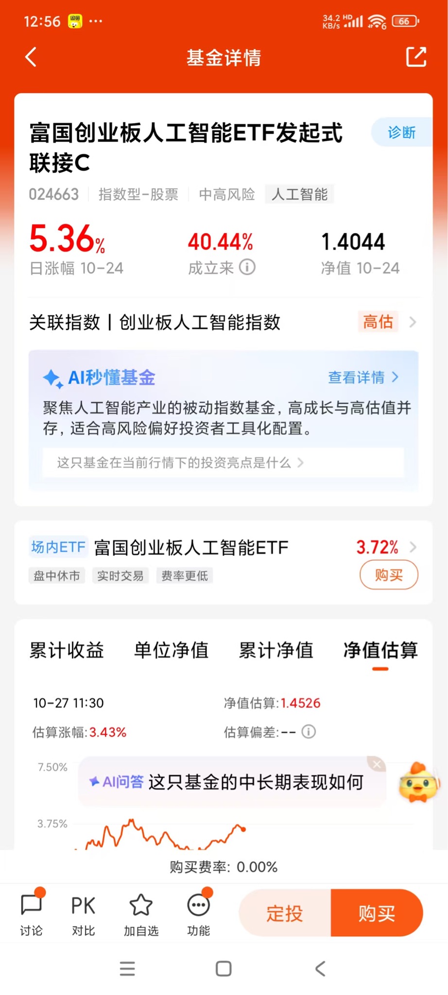 科技板块继续涨,跟上布局一波$富国创业板人工智能ETF发起式联接C$盘中估值3.
