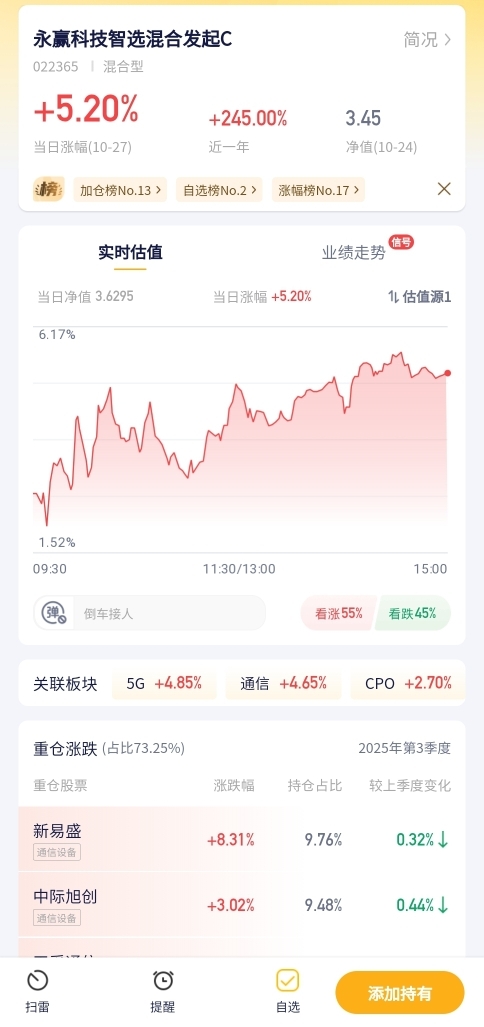 永赢科技智选混合发起C今日预估涨幅5.20%!