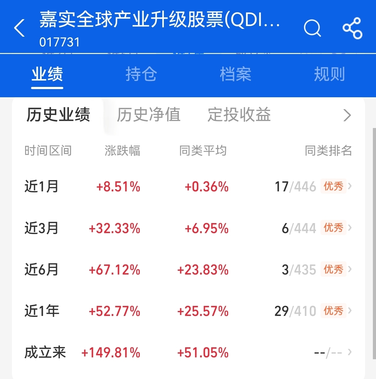 本周权益市场给力继续给力,科技表现优秀,美股的话我看表现也不错 今天$嘉实全球产业升级股票(QDII)C$ 1.64%布局全球科技产业 ,随着降息在即我认为全球科技还是主线继续看好这个全球产业 ,经理择时能力给力加油了!
