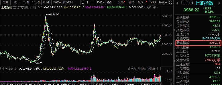 好消息,沪指盘中突破4000点,历史上只有07年和15年突破,今天是第3次值得记