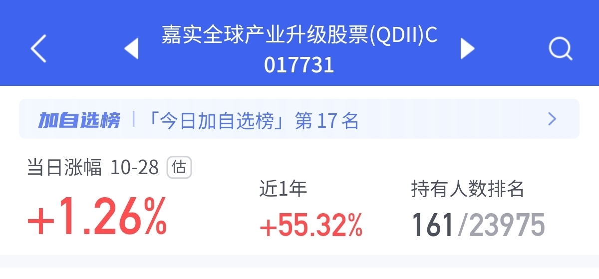 隔夜美股AI大爆发,$嘉实全球产业升级股票(QDII)C$ 去年果断重仓美股半导体板块,精准踩中人工智能技术爆发的行业红利,为净值奠定坚实基础;进入今年后,又敏锐捕捉市场变化,将港股优质科技标的纳入投资组合,实现跨市场科技机遇的高效覆盖。该基金近一年涨幅已高达55%,远超同类产品平均水平,用亮眼业绩印证了其在全球科技投资领域的专业实力。