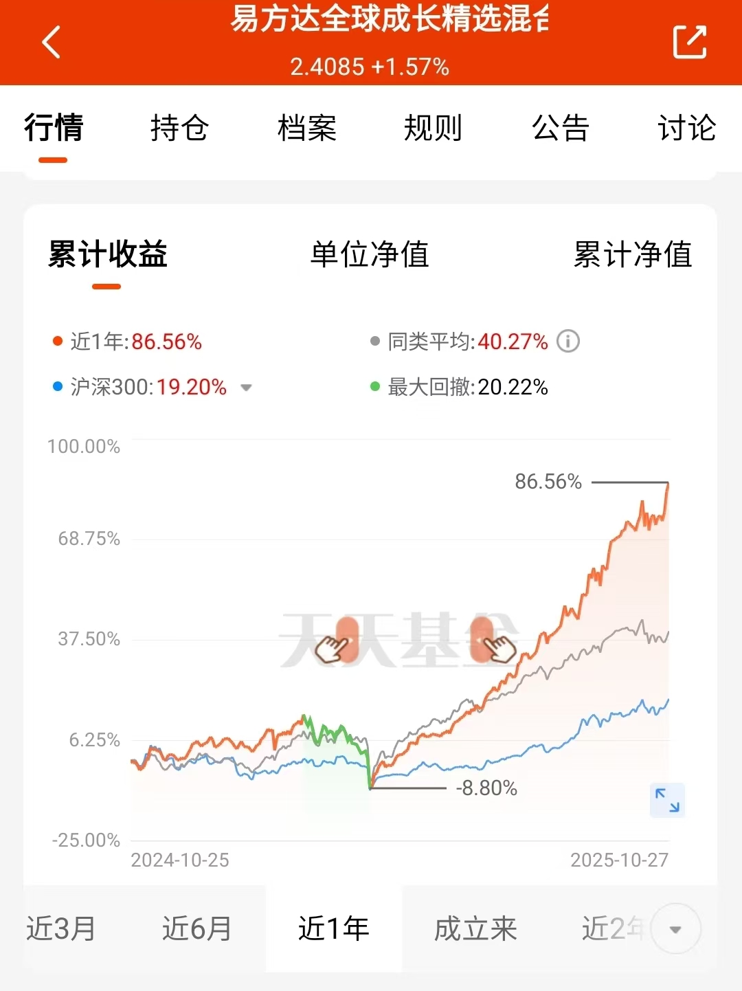 10月底美联储或将再次降息,全球科技板块行情再次启动了,想布局的伙伴可以选择易方达全球成长精选混合(QDII)C012922,基金经理通过全球范围调仓,可以说是完美的跟上全球科技赛道行情,近三个月涨幅32.17%,近半年涨幅78.36%,这业绩够优秀的。而且科技长期没走完,海内外都有很大机会,趁早上车。