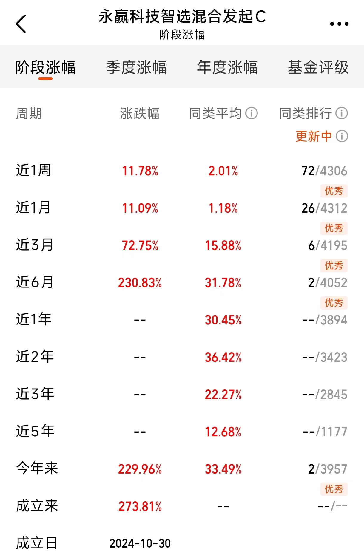 这款基金的市场表现十分亮眼,弹性十足。上周五单日大涨6.70%,点燃了投资者的热情,前日再度发力上涨5.78%,连续两个交易日的强势上涨,充分展现了基金的高弹性特质。多阶段业绩更是领跑同类,近1周在市场的波动中实现高速反弹,上涨11.78%;近三个月持续走高,涨幅达到72.75%;近6月涨幅高达230.83%,成功拿下同类第一的宝座;今年以来,基金依旧保持强劲的增长势头,取得了229.96%的收益,同样位居同类第一,这样的业绩表现足以证明其出色的投资管理能力。