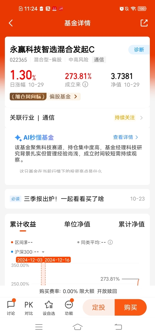 $永赢科技智选混合发起C$深耕CPO概念,有波动就有机会,昨天涨幅1.30%,近