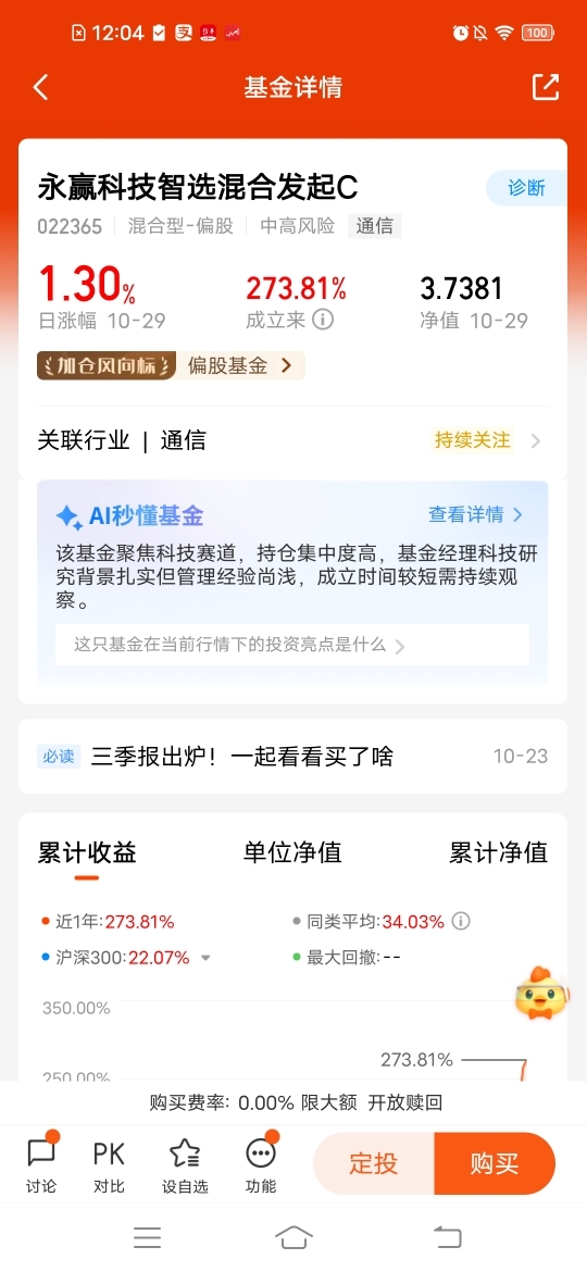 $永赢科技智选混合发起C$ 是市场上为数不多的专精CPO 概念的基金,弹性超高,昨天涨幅1.30%,近三个月涨幅72.75%,成立不到一年涨幅达273.81%,主要关注AI算力,最近AI火热,可盯紧最热赛道,远超同类平均值。而中长期来看,涵盖半导体、智能硬件等细分领域龙头,既保证了组合的进攻性,又通过分散行业风险维持稳定性。#慢慢投基路 你悟出了哪些投资哲学?#