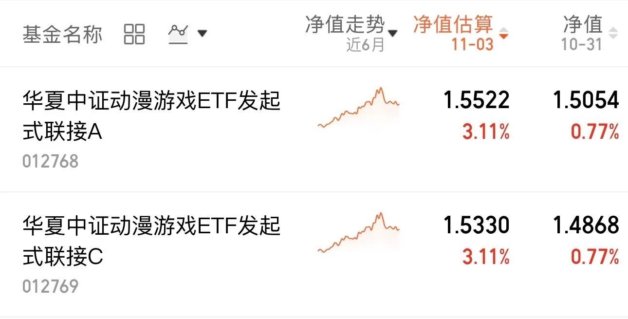 游戏赛道今年热度持续攀升,今天逆势上涨表现不错,近6个月收益28%+,$华夏中证动漫游戏ETF发起式联接C$布局板块多赛道,估值可以,年底红包靠它了