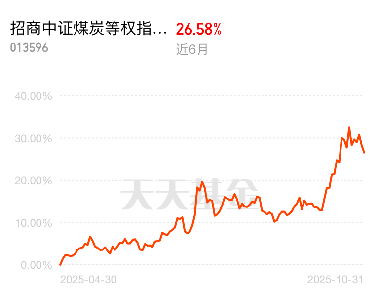 最近煤炭板块的涨停潮多,说明资金在抢筹,四季度抢筹会更猛,涨势强。$招商中证煤炭等权指数(LOF)C$ 近6个月26.58%,抢筹带来强涨势。
