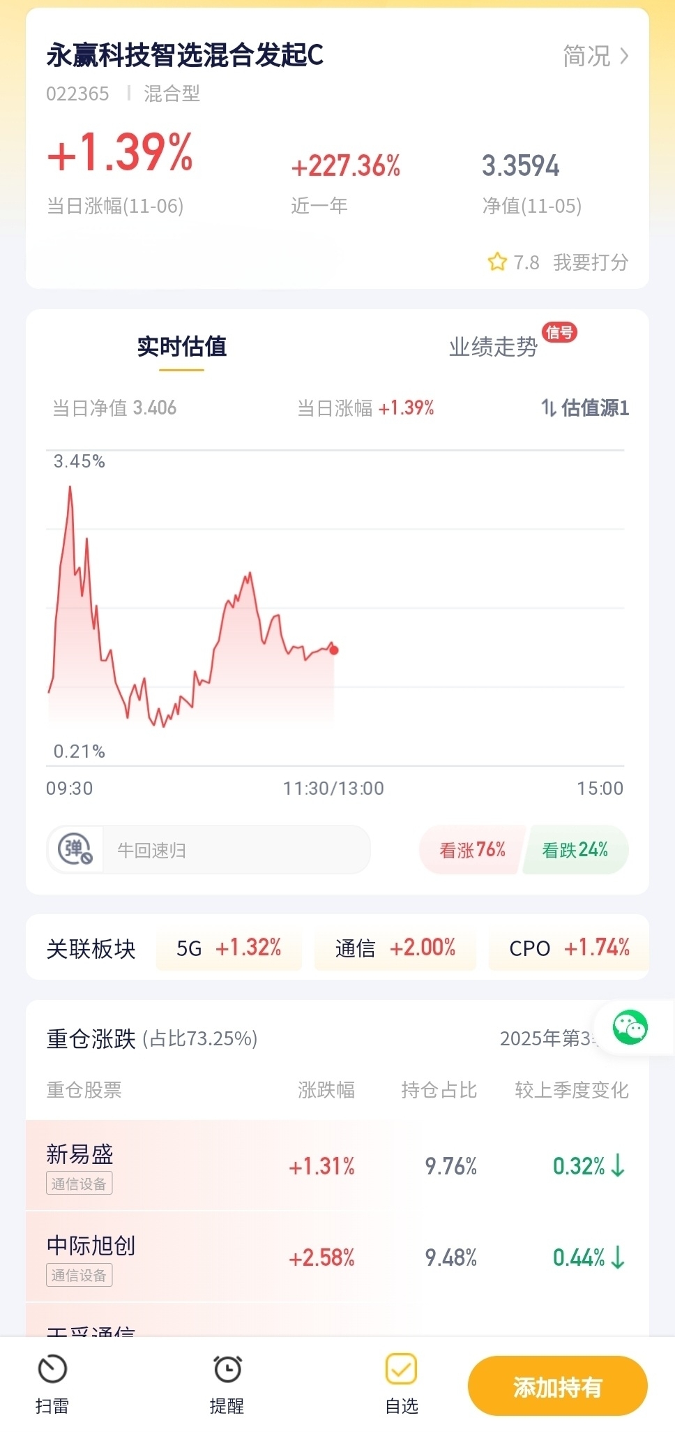 永赢科技智选混合发起C今日预估涨幅+1.39%!