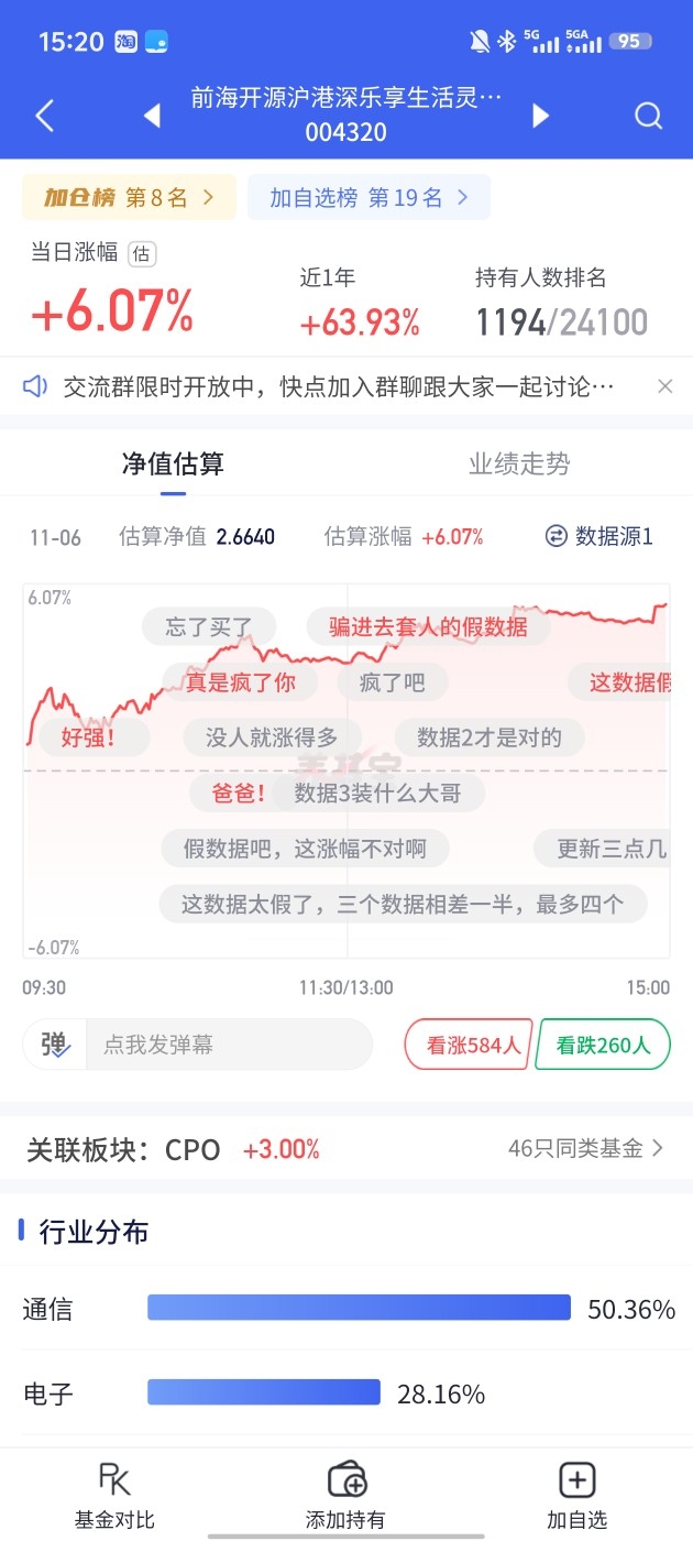 CPO板块今天爆了!乐享生活单日估值飙涨6.07%,通信+电子持仓超78%!重仓光模块龙头!加仓榜冲上第8名,584人看涨碾压空头!